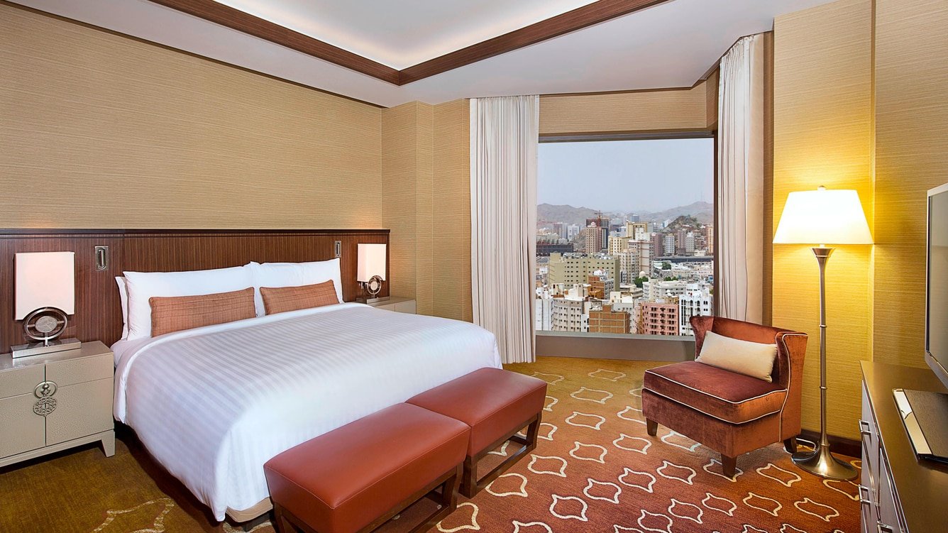 Misafirlere her gün 6.00 ve 10.00 arasında açık büfe kahvaltı servisi yapılmaktadır. Uluslar arası mutfak seven misafirler için Spice Market ideal; otelde yemek servisi yapan 2 restoran bulunuyor, ayrıca isteyen misafirler için 24 saat oda servisi var. Hafif yemek servisi kahve dükkânında/kafede yapılıyor. Misafirler için ücretsiz kablolu ve kablosuz İnternet, ofis ve lobide ücretsiz gazete servisi mevcuttur. Misafirler için minibar olan 426 oda mevcuttur. Misafirlerimizin iyi vakit geçirebilmesi için uydu kanalları mevcuttur. Özel banyo, ayrı küvet ve duş, ücretsiz banyo/kozmetik ürünleri ve bide vardır. Misafirlerimize emanet kasası, masa ve telefon ile ücretsiz şehir içi telefon görüşmesi imkânları ve kolaylıklar sunulmaktadır. Marriott Hotel’den Kabe’ye uzaklık 2,8 km. Mescid-i Haram ve Kabe ile 10 dakika sürüş mesafesinde konaklama fırsatı sunuluyor.